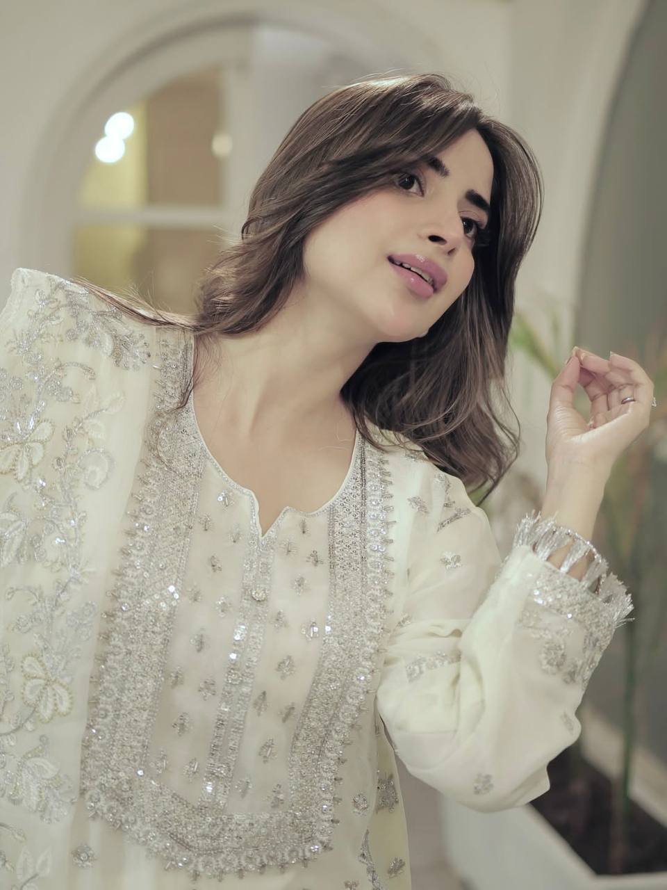 Aira White Real Hand Stone Work suit