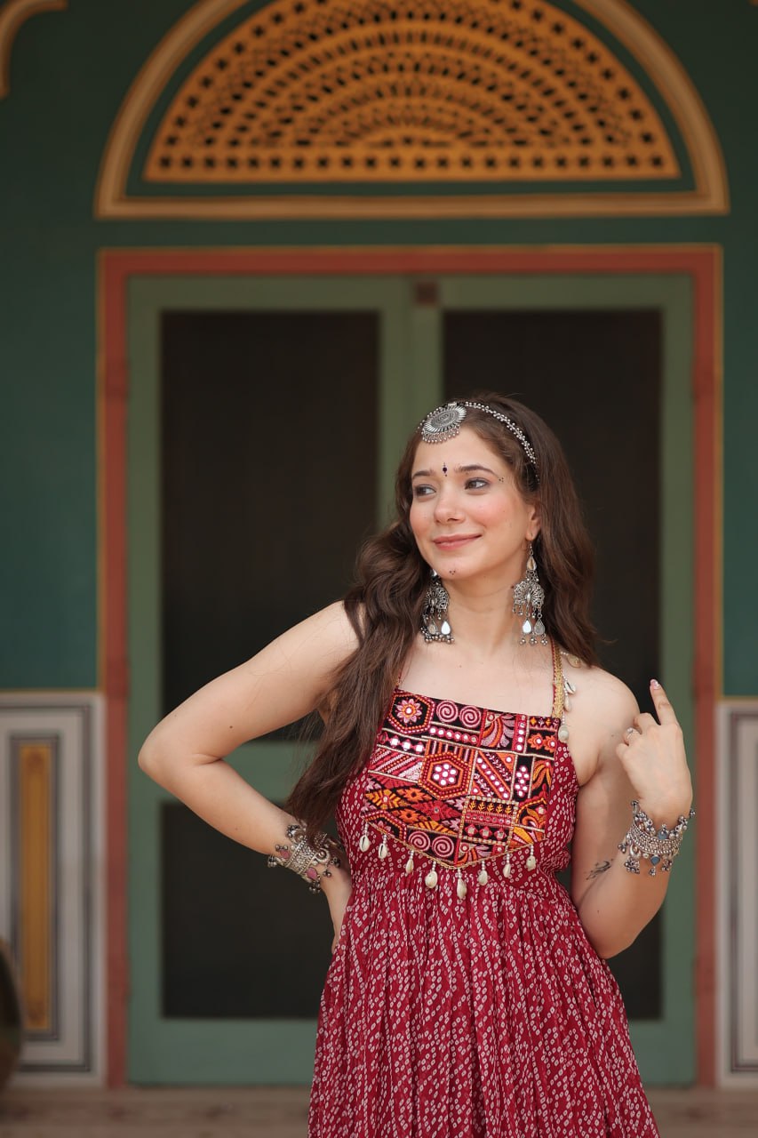 Leheriya Luxe Ajrakh Mirror Strap Anarkali Gown