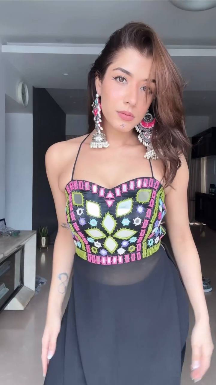 Noorina Black Mirror Embroidered Fusion Kurti Set